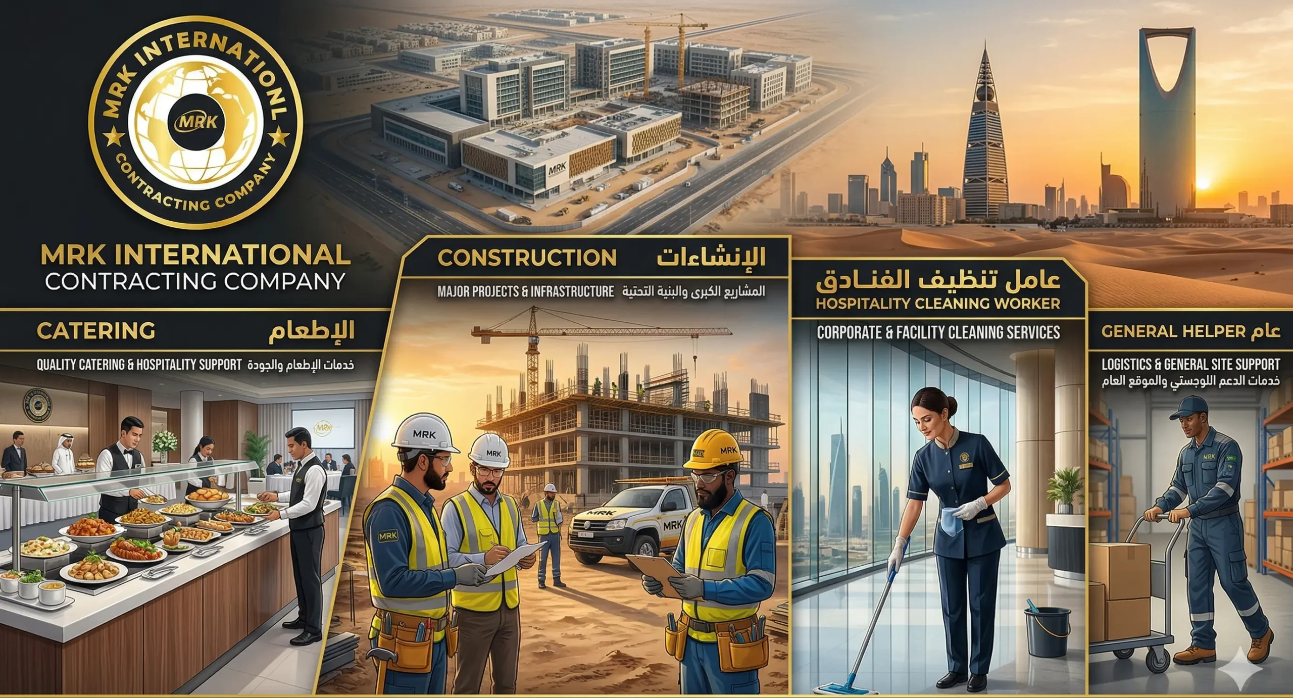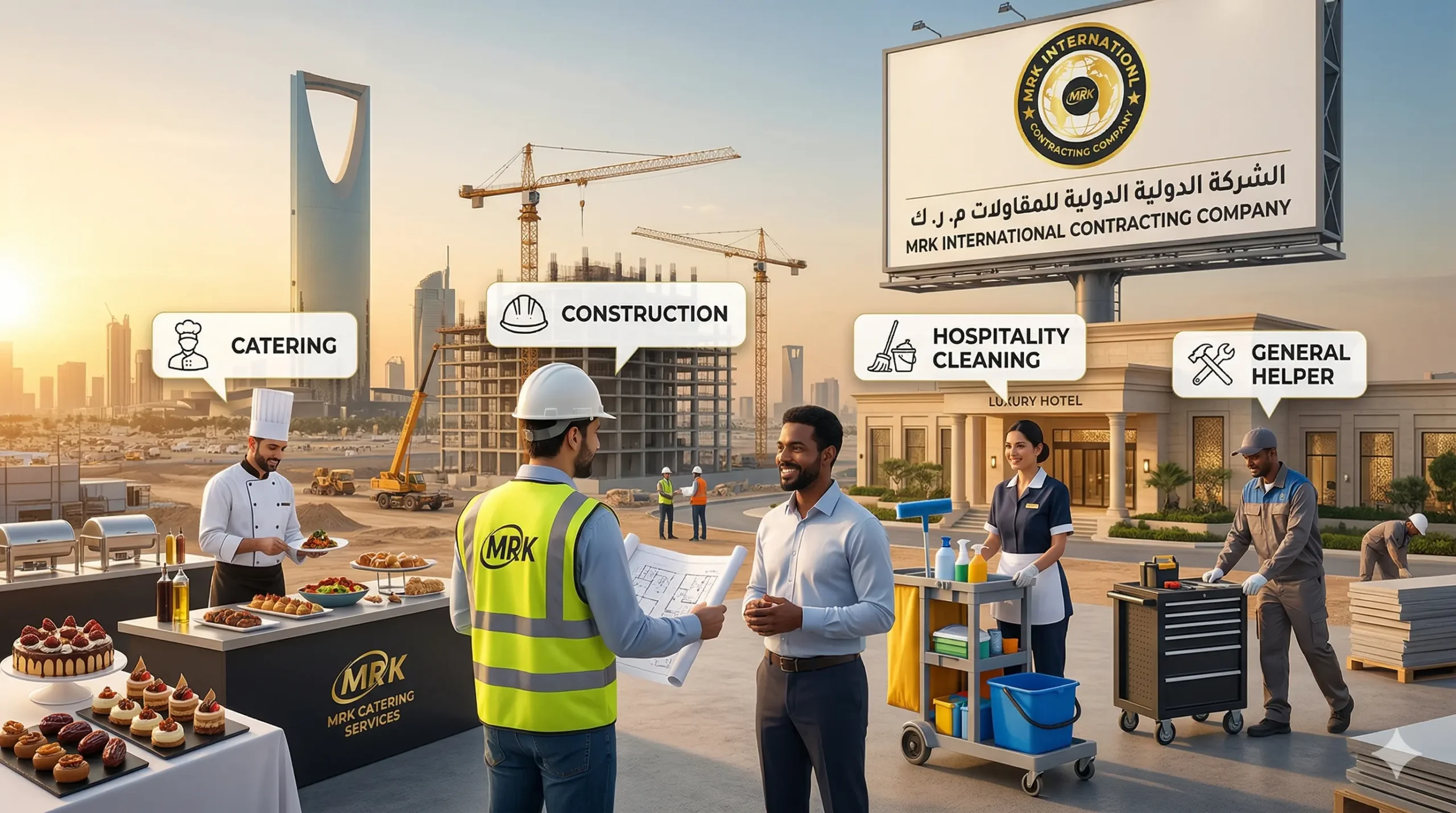 MRK International Contracting Company provides skilled and hardworking personnel for Construction, Catering, Hospitality, Cleaning, and Packing industries across KSA.